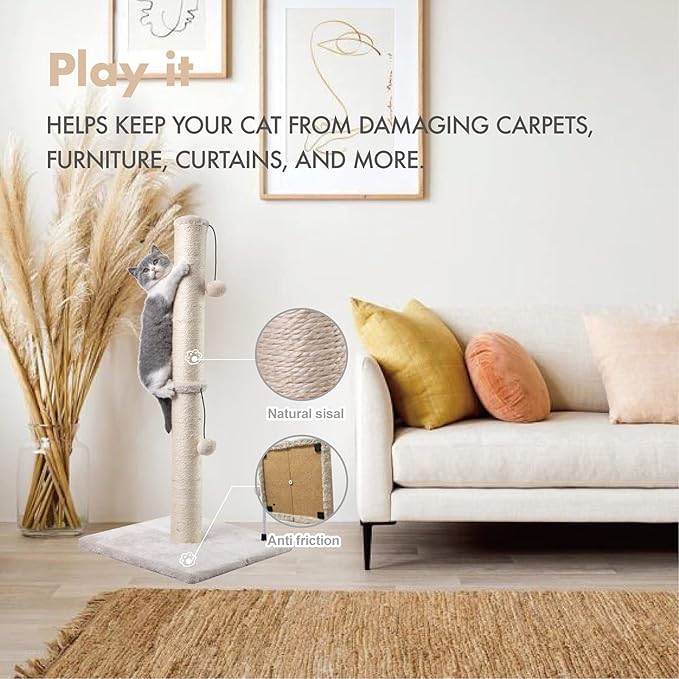 Protect your furniture: - Grab sticks and plush toys combine to attract cats to play and grab, natural sisal is suitable for cats to grab, effectively preventing cats from grabbing furniture .