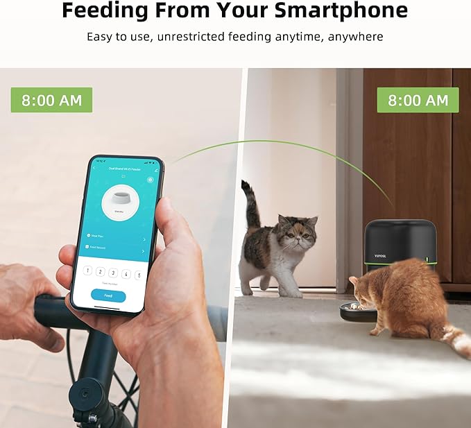Automatic 5G Cat Food Dispenser, 5G/2.4G WiFi Cat Feeder with APP Remote Feeding, Dual Power Supply, Fully Programmable Portion Size. This Auto Pet Feeder is suitable for Cats and Small Dogs.